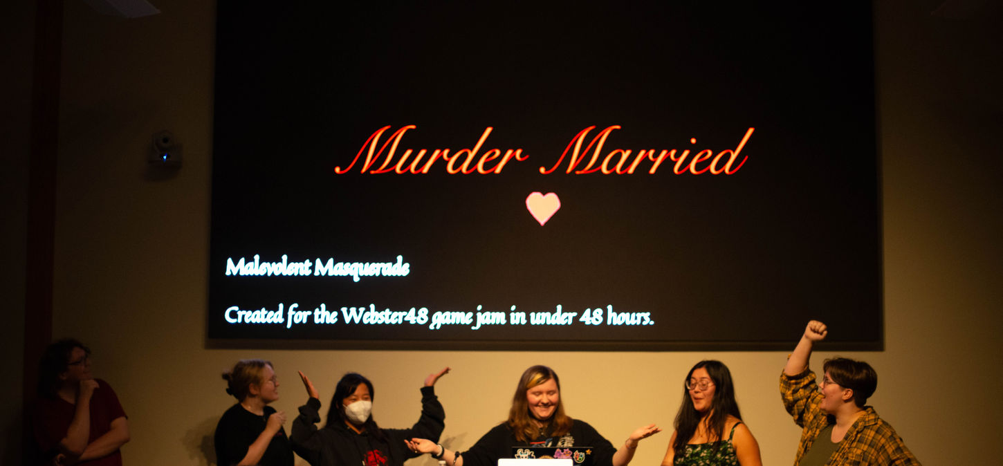 Webster48 is a 48 hour game, film, and animation jam held by and for Webster University students. Prop and unique prompts are revealed and each project is shown at a community screening after the 48 hour mark. Lastly, awards are given out based on popular voting. The event garners 50-100 participants. This last year's prop was masks!